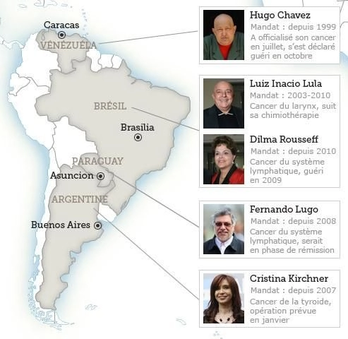 En moins de deux ans, cinq des plus importants chefs d’État en Amérique Latine sont atteints par un cancer, mettant leur vie en danger.