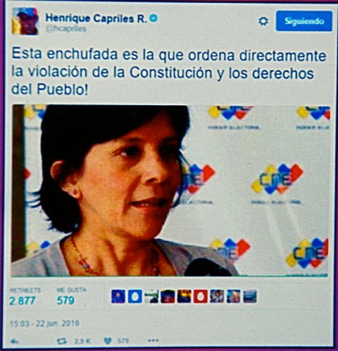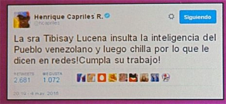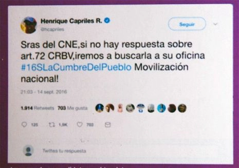 Nous présentons des captures d’écran notamment issues de tweet de Henrique Capriles.