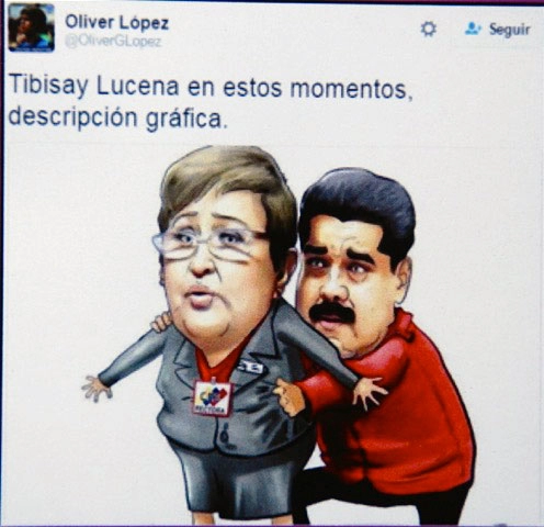 « Au Venezuela, on vit intensément la démocratie et je me demande quels sont ces gouvernements qui aujourd’hui me sanctionnent, qui sanctionnent nos autorités électorales, et qui par ailleurs ont mené quatre pays à la destruction [Afghanistan, Irak, Libye, Syrie] en moins de vingt-cinq ans, au nom de la démocratie et de la liberté. Ils imposent des sanctions et font pression sur des pays et des peuples au nom des droits humains. Néanmoins, face à d’autres parties du monde, où sont massivement violés ces droits humains, ils ne posent aucune question. Ils ne se préoccupent que des droits de l’Homme au Venezuela, où ils sont garantis. Nous, les autorités électorales, ils nous ont sanctionné pour blanchiment de capital, terrorisme et vente d’armes de destruction massive ! Alors, je dis : gouvernements insensés que ceux qui nous sanctionnent pour ça et qui confondent les actes de dignité et de souveraineté avec des actes de terrorisme ! Gouvernements insensés qui, en nous sanctionnant en tant qu’autorité électorale, confondent l’émission de votes avec l’émission d’armes de destruction massive ! »