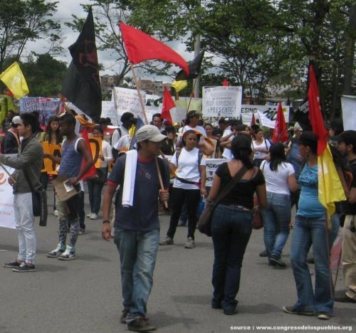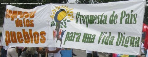 En 2008, le mouvement indigène de la région du Cauca lance la Minga de résistance sociale et communautaire. Ce mouvement a appelé à l’unité et à la mobilisation sociale pour l’exigence des droits du peuple colombien. A cet appel se sont associés dès le début des paysans, femmes, afro-colombiens, jeunes, étudiants, collectifs, travailleurs, des sans domicile fixe. La Minga a pris de l’ampleur dans l’ensemble du territoire national comme un espace d’articulation, motivant et avec un pouvoir de rassemblement. A partir de 2010, la Minga propose de construire la proposition de pays pour une vie digne comme un exercice de législation populaire : établir des lois propres depuis les bases et organisations populaires (« mandats populaires »). Ainsi est né le Congrès des Peuples (Congreso de los Pueblos). Cette proposition rassemble au-delà de la Minga près de 700 organisations de base de tout le pays avec un engagement clair d’appliquer les mandats pour la défense des territoires ruraux et urbains. En octobre 2012, cette dynamique a mobilisé autour de 200 000 personnes dans 25 régions de la Colombie (1).