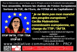 Ce qui un fois de plus démontre le fait que c’est bien la commission européenne qui décide jusque dans les moindres détails de nos vies, de l’usage des sacs plastiques jusqu’à la taille des chasses d’eau ! Le tout bien évidemment pour satisfaire les intérêts de ceux pour qui a été construite l’Europe et qui dirigent l’UE : les multinationales, les marchés et les banquiers. En clair la classe capitaliste. Si les peuples, si les travailleurs veulent récupérer le pouvoir et échapper à la dictature des banquiers et des patrons, il n’y a pas d’autre choix que de briser les chaines de l’Union Européenne.