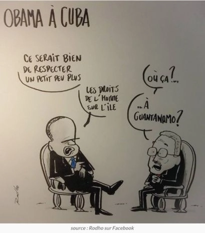 Le Devoir (Québec) du 22 mars : « Le président cubain a ensuite soulevé le bras de M. Obama en l’air à la manière de l’arbitre qui désigne le boxeur gagnant à la fin d’un combat, un geste que n’a pas semblé apprécier le président américain et qui n’a pas échappé à l’attention des internautes ».