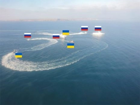 Lorsque les navires sont entrés dans les eaux russes sans s’annoncer, un navire de la garde côtière russe a percuté (vidéo) et endommagé le remorqueur. Les deux canonnières lui ont échappé mais elles n’ont pas réussi à franchir le détroit. Les photos montrent la mêlée en mer.