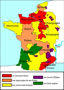 Retour au féodalisme : En fait de « nouveau monde » et « d’institutions modernes », c’est le retour à la « France des duchés et baronnies » du féodalisme d’ancien régime que nous promet la France des Métropoles et des Régions comme le visualise la carte ci-dessous. Observons que dans ce cadre, l’Etat, c’est-à-dire le royaume était aussi des plus limité ((domaine royal). Tout était « négocié » entre le Roy et ses barons et ducs, générant parfois des guerres dénommées aujourd’hui « concurrence entre territoires »…dénomination identique que celle des métropoles.