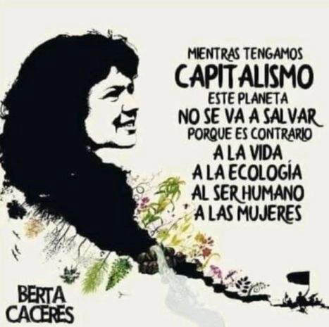 « Tant que nous vivrons sous le capitalisme, cette planète ne sera pas sauvée ; car le capitalisme est contraire à la vie, à l’écologie, à l’être humain, aux femmes », exprimait Berta Cáceres, écologiste authentique et combattante sociale hondurienne, assassinée pour s’être opposée au pillage capitaliste. Chico Méndes, un autre écologiste authentique, défenseur de l’Amazonie et militant social assassiné pour faire taire sa voix de conscience de classe, pour tenter de freiner l’organisation politique des dépossédés, signalait déjà avant d’être assassiné, les impostures du greenwashing (on n’utilisait pas ce terme alors, mais le fait existait déjà). Contre le capitalisme et son Maquillage Vert, s’était également levée Macarena Valdés, écologiste Mapuche assassinée à cause de sa défense de la nature et de la communauté. Macarena avait affronté la multinationale RP Global, de capital autrichien , qui promeut une énergie vendue comme « renouvelable et durable » (omettant sa participation de l’écocide et du génocide contre le peuple Mapuche). Les militantes et militants contre la déprédation de la nature sont des milliers, leurs voix ne sont pas médiatisées, leurs vies sont souvent courtes parce qu’elles sont brisées par les outils répressifs au service du capitalisme transnational.
