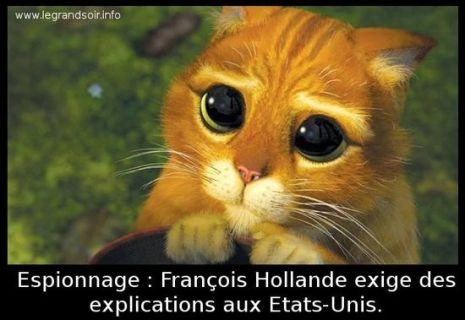 Fort heureusement, au milieu des silences et de quelques colères surjouées, une voix prophétique s’est élevée : tout comme, pendant sa campagne électorale, et défiant les forces du mal, il avait courageusement clamé « mon adversaire c’est le monde de la finance » (avec les résultats que l’on connaît), le président « socialiste » français François Hollande a crânement demandé aux Etats-Unis, le 1er juillet, qu’ils cessent « immédiatement » leur espionnage de l’Union européenne. « Nous ne pouvons pas accepter ce type de comportement entre partenaires et alliés », a-t-il souligné. Très actif sur le dossier, il s’est exprimé une nouvelle fois sur l’affaire deux jours plus tard et, provoquant le triomphe du rêve sur la mesquine réalité, a souhaité « une position coordonnée des Européens » face à ce programme d’espionnage « supposé » des Etats-Unis.