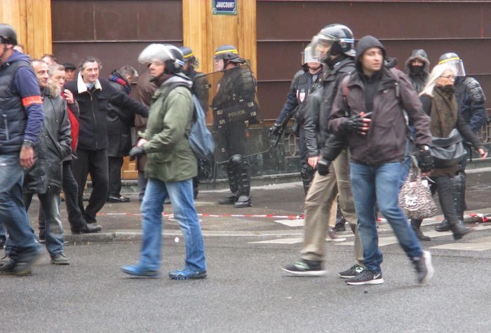 Ce sabotage systématique des manifestations sociales par de petits groupes minoritaires — qui le revendiquent parfois politiquement — fait le jeu du pouvoir. Dès lors, la question de l’identité réelle de ces provocateurs fait régulièrement l’objet de spéculations : vrais « casseurs » ou policiers ? D’autant que, si ces derniers sont en général identifiables par un brassard ou un casque siglé, ce n’est pas toujours le cas, comme en témoigne la photographie ci-dessous. Dès lors, quel rôle jouent-ils ? Comment les distinguer des briseurs de vitrines ?