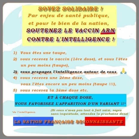 Mourir de la Covid est certes un drame pour les proches, mais cette mort est « naturelle » (pour autant qu’on croie le virus de la Covid-19 naturel). Par contre, mourir à cause d’un vaccin qu’on a forcé le médecin à administrer ou le malade à accepter contre sa volonté, sa conscience dûment éclairée ou son intime conviction est tout simplement un sacrilège, une atteinte inacceptable aux valeurs fondamentales (sacrées) de l’homme. C’est là que moi personnellement je décide d’entrer en résistance et de donner raison à tous ces citoyens anonymes et soignants de plus en plus en plus nombreux qui, se fondant sur leur profonde intuition (l’intime conviction), s’opposent aux directives des autorités. L’attitude de ces autorités politiques et sanitaires est aujourd’hui inacceptable du point de vue de l’éthique médicale. En dépossédant les médecins de leur fonction spécifique, elles se rendent en réalité complices de ce que certains appellent un « crime contre l’humanité ».