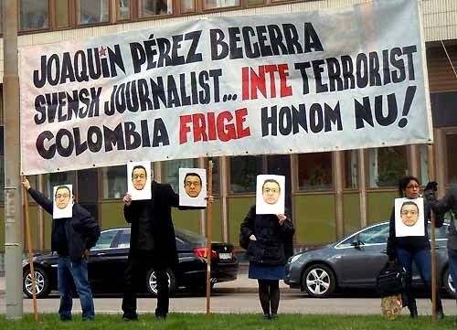 "Joaquàn Pérez Becerra est un journaliste suédois, pas un terroriste Colombien, libère-le maintenant !"