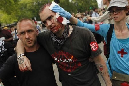 Le peuple américain excédé s’est mobilisé, avant et pendant ce sommet, au cours d’impressionnantes manifestations (3), malgré les violences policières dans une ville en état de siège. Le Congrès ne cessant de voter des lois pour diminuer services publics et programmes sociaux d’une importance vitale pour les "sinistrés du chômage", alors que le budget militaire du pays atteint la somme faramineuse de 1000 milliards de dollars. (4)