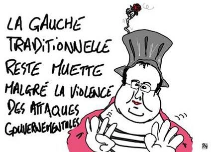 Mais le pire n’est peut-être pas là . Après tout, l’évolution de l’aile droite du PS était prévisible et elle vient de si loin... Le pire est que l’aile gauche de ce parti est comme frappée d’impuissance. Que font les Fabius, Emmanuelli, Mélenchon, Filoche, Dolez, et tutti quanti. Rien. Quelques déclarations mais ils ne posent jamais la question de la rupture avec ce parti. Ils sont, qu’ils le veulent ou non, des faire-valoir de la bande hollandiste. Ils maintiennent l’illusion, si nécessaire à la droite « socialiste », que le PS reste le PS, que la gauche est toujours la gauche et que tout continue comme avant, même si le « camarade » Hollande, le « camarade » Dray et les autres appuient la réforme des régimes spéciaux, l’autonomie des universités, le nouveau traité européen et le viol de la souveraineté populaire. Quant aux partis et organisations à l’extérieur de PS, il n’en va pas mieux. Le PCF est paralysé, par ses querelles internes et par la crainte de nouvelles pertes au municipales - d’autant que le PS semble décidé à faire mordre la poussière aux amis de Marie-George en Seine-Saint-Denis. Et tous les autres groupes restent éparpillés, impuissants, tentant de relancer la dynamique d’opposition au traité européen, espérant le salut dans le possibilité, là aussi, de rejouer une pièce qui a déjà été jouée. Au royaume des aveugles, les borgnes sont roi et le seul dirigeant de gauche qui surnage est Besancenot, propulsé par les médias d’autant plus vigoureusement qu’en voulant créer un « parti anticapitaliste » qui refuse toute alliance de gouvernement, il permet de geler la situation à gauche et constitue ainsi un obstacle non négligeable à toute entreprise de reconstruction.