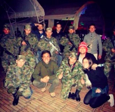 « Il faut commencer à monter des camps d’entrainement, ici en Colombie. Que nos gens apprennent à manier les armes et les explosifs, à faire de l’auto-défense et du parachute » dit l’invité de la République française. Puis il continue « nous possédons déjà des explosifs et du C4, mais nous devons avoir aussi des gilets pare-balles et de l’armement, et une façade diplomatique avec Opération Liberté [son ONG, NDT] ».