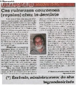 A la demande du responsable du Village du livre, Maxime Vivas a écrit depuis 2 ans des chroniques gratuites dans l’Huma, Le Grand Soir publie des articles de l’Huma (y compris des articles et déclarations de Pierre Laurent). LGS publie toutes les chroniques de Jean Ortiz, universitaire communiste, parues dans l’Huma. Les recensions de livres écrites par LGS invitent (avec les liens à l’appui) à les acheter à la librairie de la Renaissance (qui gère le Village du livre à la fête de l’Huma).
