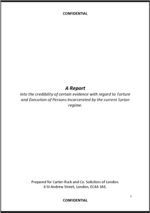 En première page on dit que ce rapport a été rédigé pour "Carter-Ruck and Co. Solicitors of London" dont les bureaux seraient situés au 6 St-Andrew Street, London, EC4A 3AE.