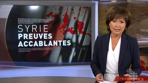 Hier encore (24 janvier) Radio-Canada utilisait cette même propagande : « Les protagonistes du conflit syrien pourraient être traduits devant la CPI [20] » Dans son article RC renvoie à son premier texte de propagande en disant : « Plusieurs dizaines de milliers de photos,.. »