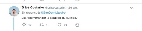 Brice Couturier recommande publiquement, sur Twitter, le suicide à un Gilet Jaune, mais on fait mine de s’indigner quand c’est crié par des manifestants nassés, gazés et frappés des heures durant sur une place transformée en souricière. Tout est filmé, documenté, diffusé, à n’en plus pouvoir.