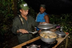 Dans ce bivouac rebelle d’une vingtaine de combattants appartenant à l’« unité d’organisation » du Front 57, se trouvent autant de Noirs, natifs du Choco, que de Blancs et de métis, souvent les cadres ou les guérilleros « spécialisés », venus d’autres contrées. Les natifs des terres chaudes lèvent les mains d’un air moqueur. « Je suis habitué aux bestioles, rit Samir, je n’en souffre pas ! Je me sens plus mal dans les terres froides, je ne les aime pas. » Les autres, eux, n’hésitent pas longtemps avant de grimacer : « Les insectes, les reptiles, le climat, le terrain… c’est difficile de s’acclimater. »