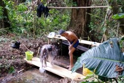 Le soleil passe encore à travers les frondaisons, mais l’après-midi touche à son terme. Sous la toile noire du cambuche (autre appellation de la caleta) qui fait office de cuisine, sur un réchaud qu’alimente une bombonne de gaz (pacifique, celle-là), Richard a commencé à préparer le dîner – viande, riz et yucca. Assis sur un tabouret, un guerrier en uniforme pleure… en épluchant les oignons. « Il n’y a pas de différence entre les hommes et les femmes, se félicite Vanessa, qui vient de se laver et de se rafraîchir en occupant la salle de bain – un cours d’eau étroit et peu profond situé en contrebas. Les muchachos nous voient comme des égales. » Puis avec un sourire facétieux : « Il y a parmi eux d’excellents cuisiniers. » Évidemment, la Colombie n’étant pas une terre de miracles, on évitera tout enthousiasme romantique poussant à exagérer les progrès accomplis. « On est restés de nombreuses années sur une égalité formelle, sans travailler beaucoup la culture, réfléchit Nathalie Mistral. Alors, effectivement, il n’y a pas de différences entre les sexes au quotidien, mais, en couple [ce qui n’a rien d’exceptionnel au sein des FARC], l’homme cherche parfois à finasser. Genre “je monte la caleta, tu fais la lessive” ou “je vais chercher la nourriture, tu raccommodes mon linge”… Pratiques que notre règlement interne interdit ! » Au-delà de ces accrocs, le partage des tâches demeure un principe clairement affirmé et accepté, en décalage (positif !) avec les pratiques de la « société civile » [3]. Comme quoi il faut se méfier des idées reçues. Penché sur une centrifugeuse, Andrés prépare sans barguigner un succulent jus de fruits.