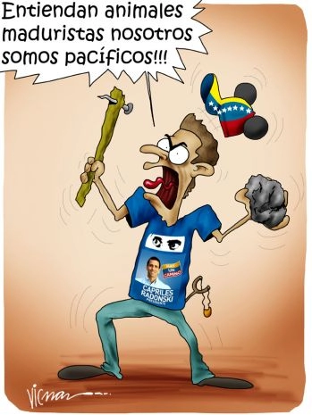Prenons un exemple : « c’est vrai » que la mobilisation de l’opposition organisée la semaine dernière à Caracas avait un caractère pacifique. Henrique Capriles lui-même l’a dit, et Ramos Allup l’a confirmé le même jour : « Nul ne nous écartera du chemin pacifique et démocratique ».