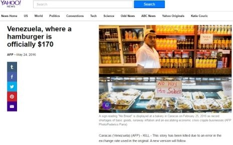 L’agence française AFP a publié le 21 mai passé une note qui a été reproduite en un éclair dans tous les médias internationaux et dans certains au Venezuela, malgré le fait qu’ils savaient que c’était un énorme mensonge. La note disait qu’un hamburger coûtait dans le pays sud-américain mille 700 dollars et une chambre dans un hôtel, 69 mille dollars.