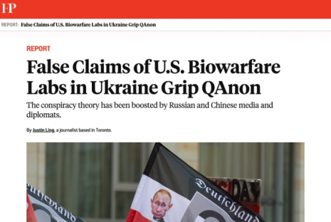 Les affirmations selon lesquelles l’Ukraine possède actuellement des laboratoires d’armes biologiques dangereuses sont venues de la Russie et de la Chine. Le ministère chinois des Affaires étrangères a affirmé ce mois-ci : "Les États-Unis ont sous leur contrôle 336 laboratoires dans 30 pays, dont 26 rien qu’en Ukraine." Le ministère russe des Affaires étrangères a affirmé que "la Russie a obtenu des documents prouvant que des laboratoires biologiques ukrainiens situés près des frontières russes travaillaient au développement de composants d’armes biologiques." De telles affirmations méritent le même niveau de scepticisme que les démentis américains : à savoir qu’il ne faut pas croire que tout cela est vrai ou faux en l’absence de preuves. Pourtant, les vérificateurs de faits américains se sont consciencieusement et par réflexe rangés du côté du gouvernement américain pour déclarer que de telles affirmations étaient de la "désinformation" et pour les tourner en dérision en les qualifiant de théories du complot de Qanon.