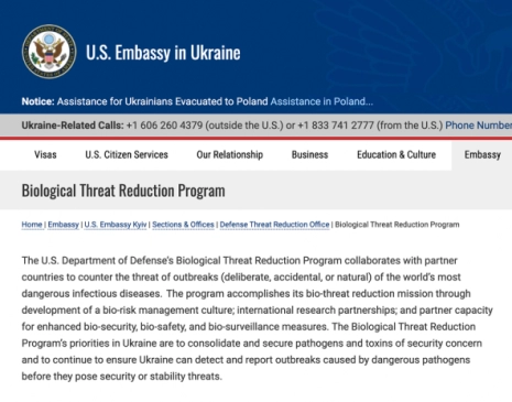 Malgré tout le langage dédaigneux utilisé au cours des deux dernières semaines par ceux qui se sont autoproclamés "vérificateurs de faits", il est confirmé que les États-Unis ont travaillé avec l’Ukraine, pas plus tard que l’année dernière, au "développement d’une culture de gestion des risques biologiques, de partenariats de recherche internationaux et de la capacité des partenaires à renforcer les mesures de biosécurité et de biosurveillance". L’ambassade des États-Unis en Ukraine s’est publiquement vantée de son travail de collaboration avec l’Ukraine "pour consolider et sécuriser les agents pathogènes et les toxines présentant un risque pour la sécurité et pour continuer à garantir que l’Ukraine puisse détecter et signaler les épidémies causées par des agents pathogènes dangereux avant qu’elles ne constituent une menace pour la sécurité ou la stabilité".