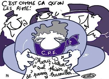 En prétendant que les Cpe sont mieux que les Cdi, M de Villepin est un menteur sans vergogne qui joue sur l’ignorance de millions de gens sur le droit du travail : quiconque connaît les lois s’appliquant aux Cdd ne peut croire une seule seconde l’esbroufe de M. de Villepin qui prétend que le Cpe est l’offre la plus sociale qui a jamais été faite aux jeunes... quel culot, quel mensonge frontal ! (cf comparaison juridique point par point entre Cdd et Cne-Cpe)