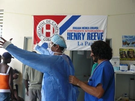 En octobre 2010, des soldats népalais des Nations unies ont introduit par inadvertance le virus du choléra à Haïti. Selon l’ONU, l’épidémie a été découverte par l’équipe médicale cubaine du Docteur Jorge Luis Quiñones. Elle a coûté la vie à 6 600 personnes et en a infecté 476 000 autres, ce qui représente près de 5% de la population sur un total de 10 millions d’habitants. Il s’agissait du taux de choléra le plus élevé au monde selon les Nations unies. Le New York Times souligne dans un reportage le rôle-clé des médecins cubains : « La mission médicale cubaine qui a joué un rôle important dans la détection de l’épidémie est toujours présente à Haïti et reçoit chaque jour la gratitude des donateurs et des diplomates pour sa présence sur les lignes de front et pour ses efforts de reconstruction du système de santé délabré du pays [26] ».