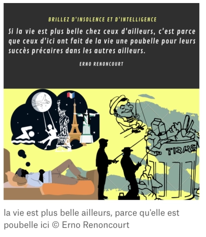 De sorte que si la vie est plus belle chez ceux d’ailleurs, c’est parce qu’aussi collectivement ceux d’ici sont si indignes qu’ils ont appris à se contenter de la vie même quand elle est poubelle. Pour citer à nouveau Noam Chomsky, changez les médias, pour paraphraser Bourdieu, dimensionnez les forces symboliques et culturelles, et vous agirez de manière intelligente sur le réel. Aussi incertain soit-il.