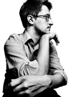 Snowden ajuste ses lunettes ; une des plaquettes manque, ce qui les déséquilibre occasionnellement. Il semble perdu dans ses pensées, ressassant le moment où il prit sa décision, ce point de non retour. L’époque où, clé USB dans la main, il partit secrètement au travail, conscient des énormes conséquences possibles. ’Si le gouvernement ne représente pas nos intérêts’ dit-il d’un air sérieux et choisissant ses mots, ’alors le peuple prendra fait et cause de ses propres intérêts. Et être un lanceur d’alerte est juste un des moyens traditionnels pour y parvenir”.
