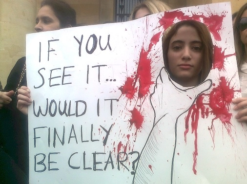 A Beyrouth, si la Syrie voisine fait entendre sa guerre, la manifestation qui se met en place produit un autre son, celui des femmes qui protestent contre la violence domestique, véritable guerre intérieure où tombent chaque jours de plus en plus de mères, d’épouses et de filles. La mobilisation dénonce aussi l’atermoiement des forces gouvernementales autour d’un projet de loi sur « la violence contre la femme ». Une loi pour qu’un avocat général au service de la famille puisse prendre la décision d’éloigner la victime de l’auteur des violences ; une loi pour favoriser la création d’une force de sécurité intérieure affectée spécialement à la gestion de cette violence, car la femme qui va porter plainte à la gendarmerie est souvent perçue comme une suspecte. Jusqu’ici, le mari peut même porter plainte contre la femme qui fuit le foyer : une vraie vie en enfer ! En ce jour, l’urgence est de vaincre les dernières oppositions, et c’est pour cela que les protestataires réclament haut et fort l’urgence d’une confrontation publique et directe avec les autorités religieuses et les députés qui les soutiennent, car l’enjeu n’est plus de parler de démocratie mais de la vivre.