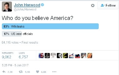 Qui crois-tu, Amérique ? 83% Wikileaks et 17% les officiels du renseignement étasunien.