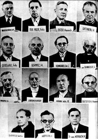 Paul Warburg, frère de Max Warburg (du conseil d’administration d’IG Farben), fonda le système de réserve fédéral des USA. Max Warburg et Hermann Schmitz ont joué un rôle central dans l’empire IG Farben. Carl Bosch, Fritz ter Meer, Kurt Oppenheim et George von Schnitzler étaient d’autres dirigeants de l’entreprise. Tous, sauf Paul Warburg, furent jugés et condamnés comme criminels de guerre à Nuremberg.