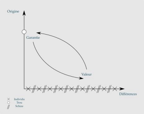 C’est ici que cette thèse de Lénine rejoint la topologie de Lacan. Je signale ce point car dans un autre contexte, Lacan souligne en 1976 dans Le Sinthome, séminaire qui marque une topologie nouvelle, le fait que Lénine indique comment une ligne, une droite peut être tordue. Mais ici il s’agit de la logique des trous et donc des transferts de valeurs que j’ai évoqués dans les troisième et quatrième partie de cette série. Lacan signale en 1977 [18] comment il n’y a de Tout que criblé et pièce à pièce, et que ce qui compte est de savoir si une pièce a ou non une valeur d’échange. Un individu est une pièce dans ce Tout criblé de trous. Un individu tout seul n’existe pas, mais son existence se raccorde à un autre via l’outil topologique du trou. C’est dans ce contexte qu’un individu peut devenir dans un différentiel, valeur d’échange et c’est un outil essentiel pour l’analyse concernant l’avenir.