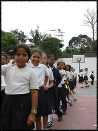 La sonnerie retentit dans les couloirs de l’école Alberdi. C’est la fin des cours. Des élèves m’accompagnent vers la cours de récréation. Sur le chemin, ils me montrent fièrement le petit jardinet qu’ils entretiennent avec soin car "querer es cuidar" , disent-ils, "aimer c’est soigner" . Dans la cour intérieure, les différentes classes sont réunies en files indiennes, prêts à chanter l’hymne national alors que certains se chamaillent pour mettre le drapeau en berne pour deux jours. Deux jours car demain, c’est congé. Le Venezuela célèbre la bataille de Carabobo, la dernière grande et glorieuse bataille des troupes du Libertador Simon Bolivar le 24 juin 1821 permettant à la république vénézuélienne de consolider son indépendance proclamée le 5 juillet 1811.
