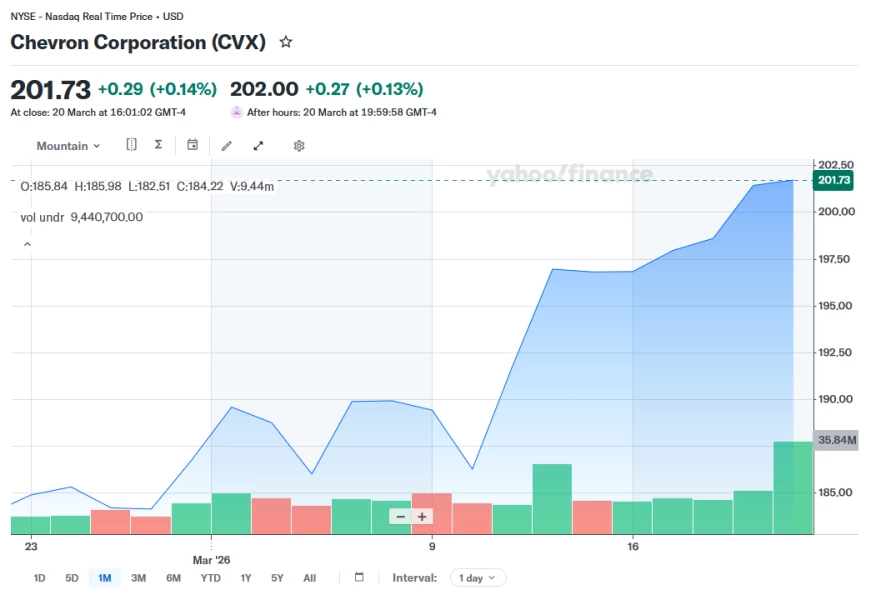 Voici le cours de l’action Chevron au cours du mois dernier :
