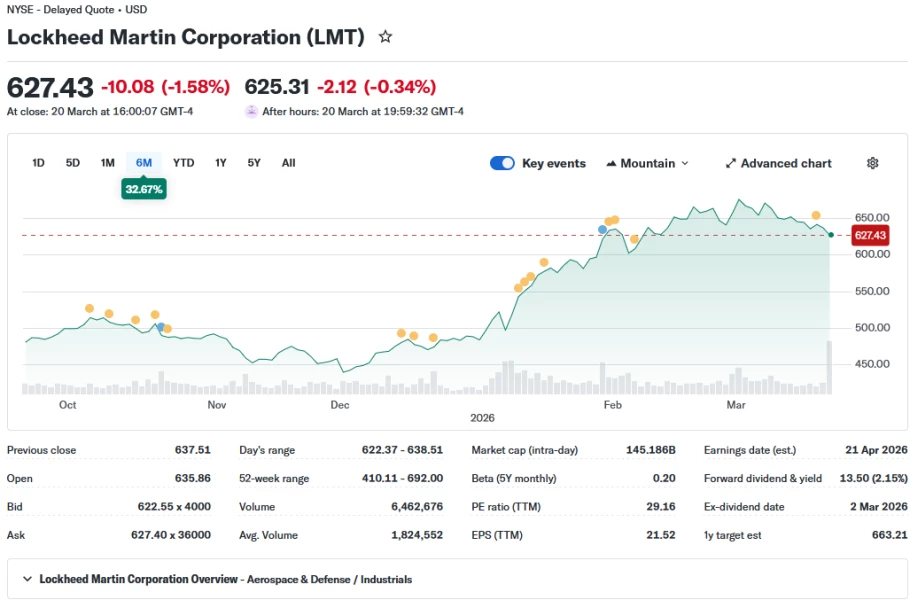 Voici Lockheed Martin. À noter que le début de la hausse de 40 % du cours de l’action coïncide avec les instructions données l’an dernier concernant l’augmentation massive de la production d’intercepteurs.