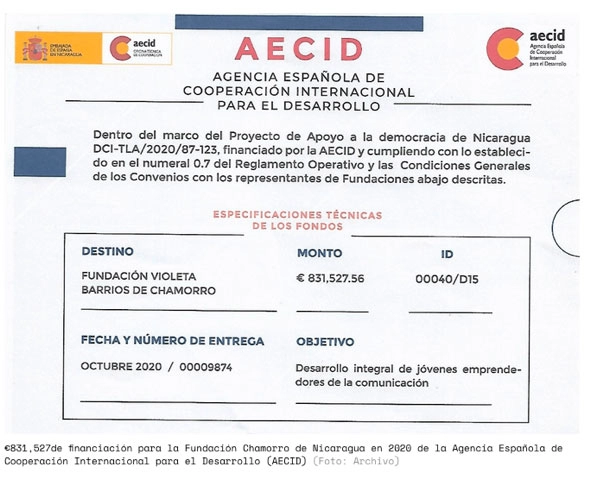 Depuis 2009, l’USAID a spécifiquement destiné (de l’ordre de) 10 millions de dollars aux médias d’opposition – dont plus de 7 millions ont transité par la Fondation Chamorro de 2014 à 2021. Sachant que, par ailleurs, cette dernière a bénéficié d’un cadeau de 831 527 euros (plus d’un million de dollars) de l’Agence espagnole de coopération internationale pour le développement (AECID) [14]. Ce flot d’innocentes contributions étant sans doute par trop limité, un programme « Médias du Nicaragua » de Family Health International (FHI), une organisation basée en Caroline du Nord et partiellement financée par le gouvernement des Etats-Unis, a octroyé 45 subventions allant de 10 000 à 15 000 dollars à des organes de presse antisandinistes pour un total de 2,8 millions de dollars.