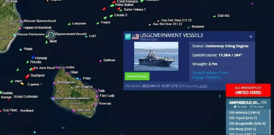Au large des côtes de Bornholm, au Danemark, c’est là que les pipelines ont été touchés. Il y a quelques jours, l’USS Kearsarge se trouvait dans cette zone :