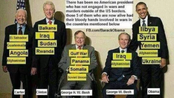 La photo nous présente des présidents états-uniens patriotes qui n’ont fait que leur devoir : attaquer des pays frontaliers qui menaçaient le territoire yankee.