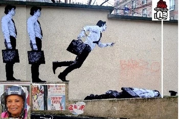 La maison prend l’eau de partout, c’est tout juste si les chaises ne commencent pas à flotter. Mais ce qui étonne le plus le martien, c’est la musique : pendant que les fantômes invités dans la maison de l’île, tous plus incolores et insipides les uns que les autres, se pressent pour occuper les chaises, surtout devant la porte d’honneur (ah ! Ils y tiennent, à se faire voir devant porte d’honneur !), la musique qui joue, c’est troulala troulala zimboumboum tirelarigolo, tirelarigolette, et quand ça s’arrête, on constate qu’il ne reste plus rien de la vie vivante, ni libertés, ni code du travail, ni services publics, ni bio-éco durable, seulement des prisons, des camps, des miradors.