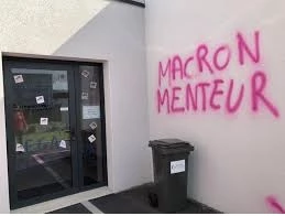 Eborgner, amputer, matraquer, gazer, passe encore, mais tagguer une permanence d’un élu LREM, ou le mur d’enceinte de sa maison, voila bien des actes de violence i-nac-cept-ta-bles dans un Etat de droit.