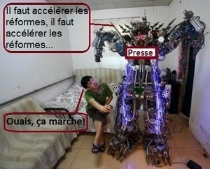 Est-il vraiment impossible de distinguer un journaliste d’un robot journaliste, les deux faisant ce qu’on leur dit de faire (programmés pour) ? Non ! Il existe une méthode infaillible : celui qui ne se marie pas avec un (e) ministre où ne dîne pas avec les patrons de l’UMP et du MEDEF est le robot.