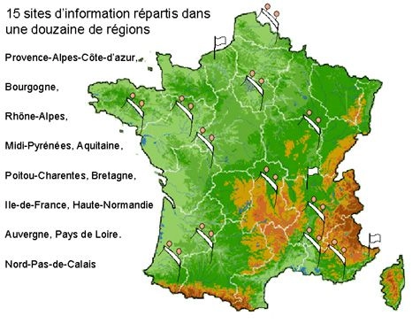 Plusieurs sites d’information répartis sur le territoire français, et identifiés par une grande banderole aérienne accueilleront des stands et des attractions (films, conférences-débats publics...).