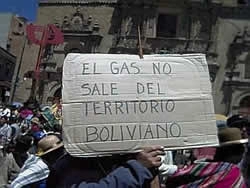 Les deux pays qui disposent des principales réserves de gaz en Amérique du Sud sont le Venezuela et la Bolivie. Aux dernières estimations, cette dernière compte 52,3 trillions de pieds cubes de gaz. Depuis 1996, avec la Loi de capitalisation, les hydrocarbures ont été privatisés. Aujourd’hui, 30 multinationales parmi les plus importantes de la planète contrôlent les réserves boliviennes. Par exemple, Andina (appartenant à Repsol) détient 24% des réserves de gaz, tandis que TotalElfFina dispose de 15%. L’exploitation du gaz est très avantageuse en Bolivie : 97% des réserves exploitées ne rapportent que 6% des bénéfices au Trésor Général de la Nation. Avec la Loi de capitalisation, la Bolivie aura perdu entre 2002 et 2007 un montant supérieur à sa dette externe !