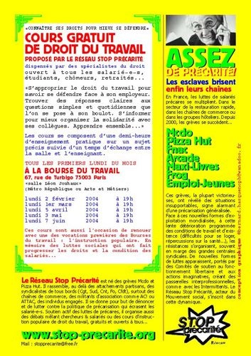 Le Réseau Stop Précarité propose des cours gratuit de droit du travail dispensés par des spécialistes du droit, ouvert à tout le monde.