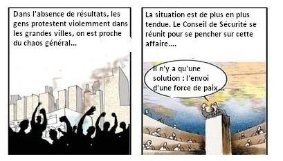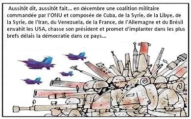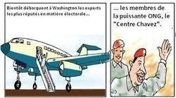 Le journaliste Gilberto Maringoni, présent à la la réunion de solidarité de Sao Paulo, avait alors pris sa plume de dessinateur pour imaginer (en 2004) ce qui se passerait si on observait les élections aux États-Unis avec la même rigueur et la même énergie qu’au Venezuela. Il inventa même pour l’occasion une nouvelle ONG : le centre "Chavez" …