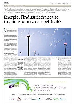 Le débat national sur la transition énergétique, peu traité par le journal, trouva soudain une vive expression, le 17 mai, sous la forme de quatre pages axées sur « la compétitivité des entreprises » et majoritairement rédigées par des journalistes économiques extérieurs à la rédaction. On expliquait que l’enjeu essentiel d’une nouvelle politique énergétique était la compétitivité des entreprises, que le gaz de schiste réveillait l’industrie américaine, que la politique énergétique allemande produisait maints effets pervers. Un colloque organisé par l’Association française des entreprises privées (les cent plus importantes) et le Cercle de l’Industrie (fondé naguère par Dominique Strauss-Kahn) avec Le Monde accompagnait cet exercice de communication, qui remerciait Alstom, Areva, GDF-Suez, Arkema, Lafarge, etc. Ces partenaires avaient-ils apporté 35 000 euros au journal pour prix de ces quatre pages, comme me l’indiqua un collègue bien placé pour le savoir ?