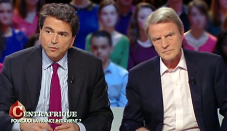 Eh bien, tout pouvant arriver, il se trouve que, jeudi soir, dans l’émission du 5 décembre 2013, une partie était directement intéressante, sans nécessité d’antithèse et d’inversion. Il s’agissait de deux invités, l’ancien ministre des affaires étrangères Bernard Kouchner dans un gouvernement Sarkozy et le député UMP et ancien secrétaire d’État (sous les ordres de Kouchner), Pierre Lellouche.