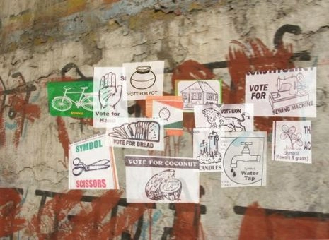 On peut se demander pourquoi ce système de symboles, de glyphes, pour les partis, n’est utilisé que dans ce cadre à l’intention des analphabètes et non pas ailleurs dans les services collectifs.